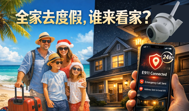 全家去度假,谁来看家?E911一键报警的24小时数字保安,守护空巢假期
