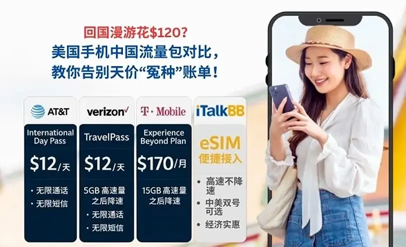 回国漫游花$120?美国手机中国流量包对比,教你告别天价“冤种”账单!