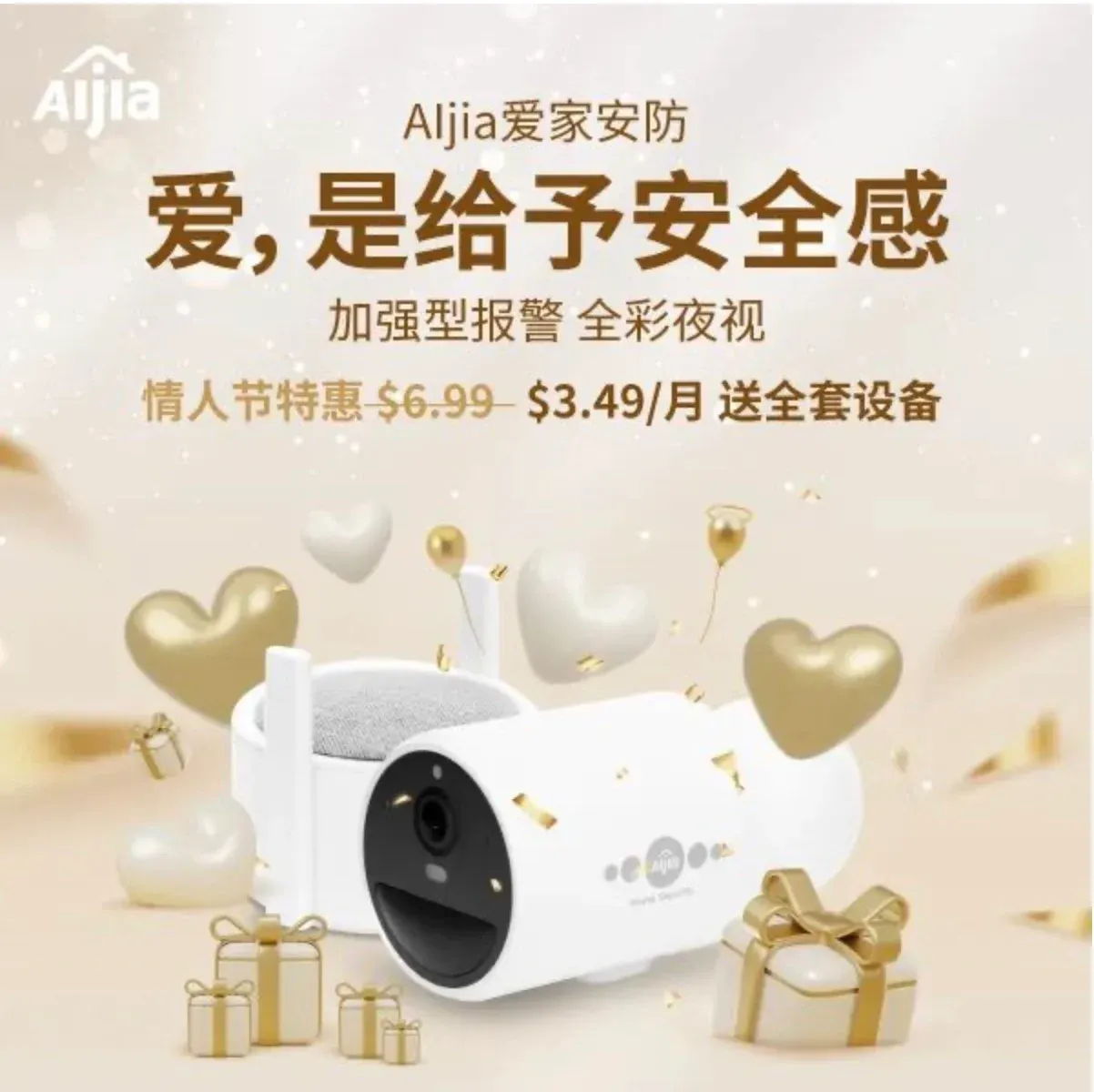 目前情人节优惠期间 ,AIjia摄像头免费送,用户只用支付低至$3.49的月费,即可使用摄像头的所有功能。