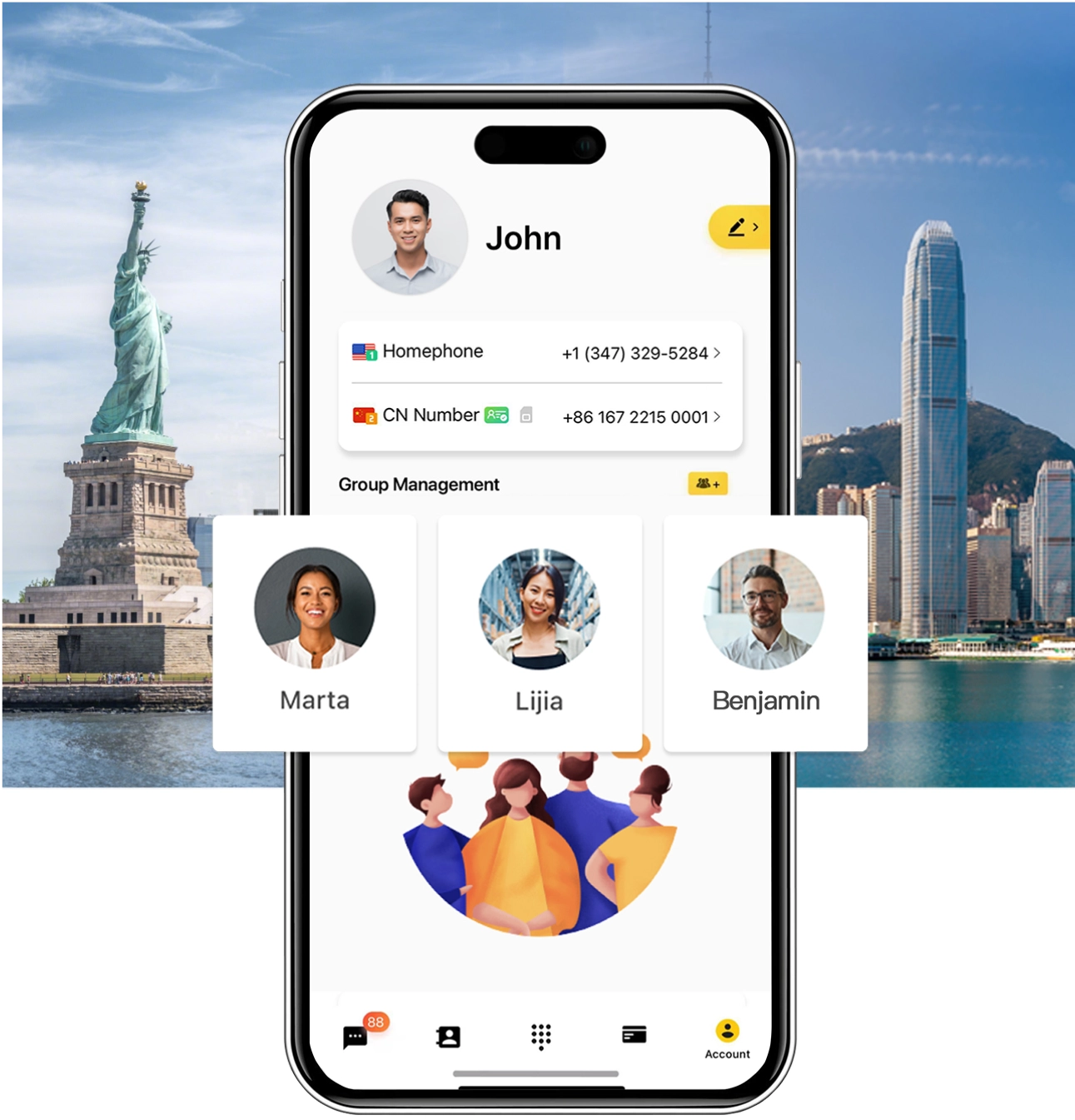 香港号码 + 美国号码