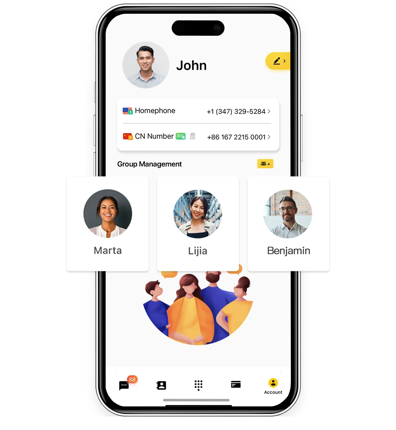 中国号码 + 美国号码