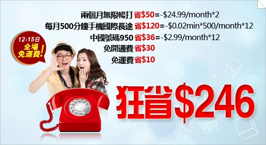 购买iTalkBB全球包月计画,每月只需$25,就能无限拨打本地电话、国际长途。十周年之际,超值加倍、优惠升级:大礼包倾情奉上两个月座机无限畅打、免费手机国际长途通话、950中国号码。座机手机、随时随地,让您与世界各地的亲人朋友通话畅通无阻。