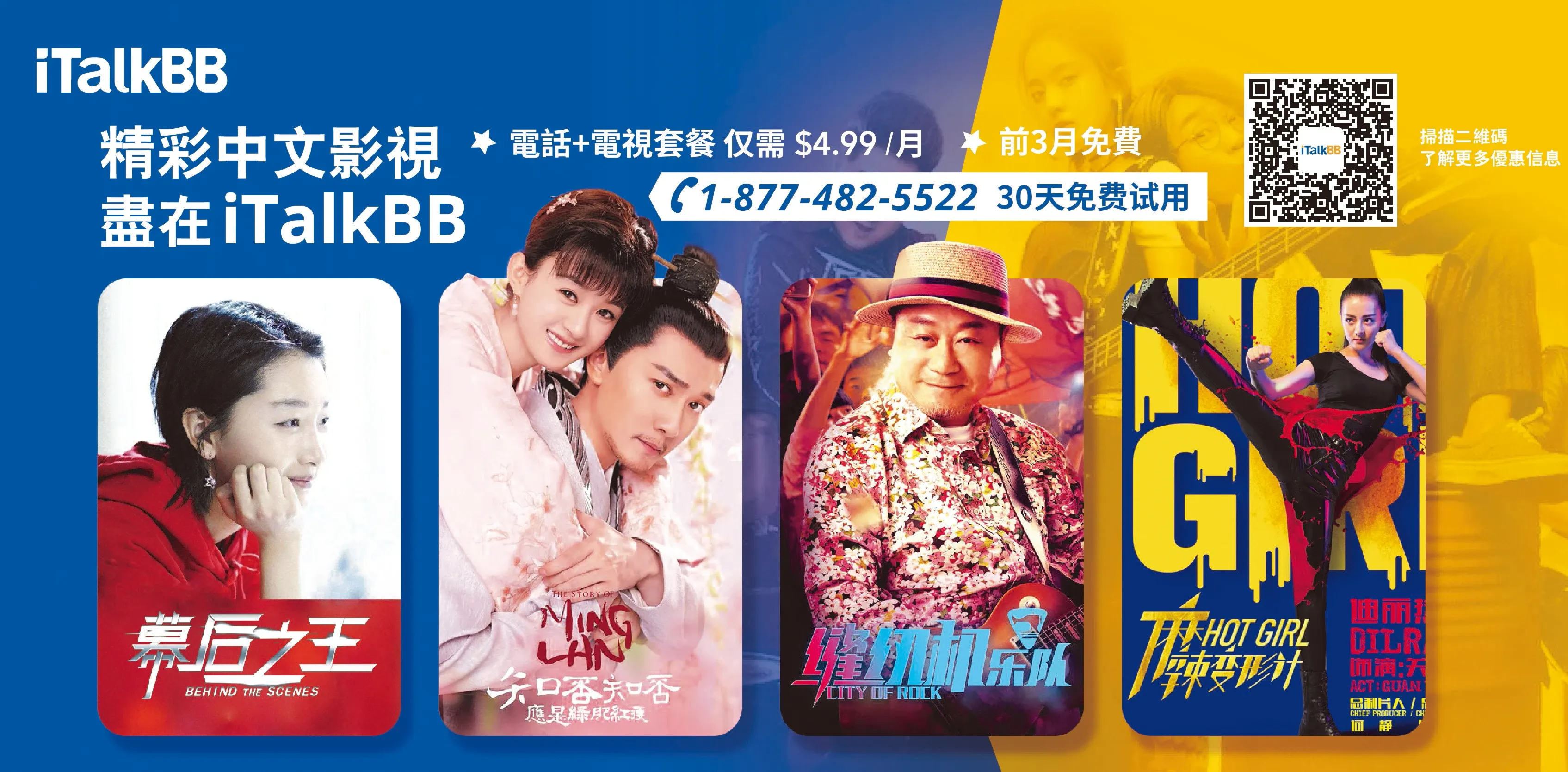 iTalkBB,为海外华人家庭提供中文电视服务,创造美好海外生活。中文电视包括 60多个中文直播频道,看新闻了解资讯无忧;海量同步上映中文电影电视剧,紧跟国内热剧潮流。欢迎拨打1-877-482-5522,咨询订购!