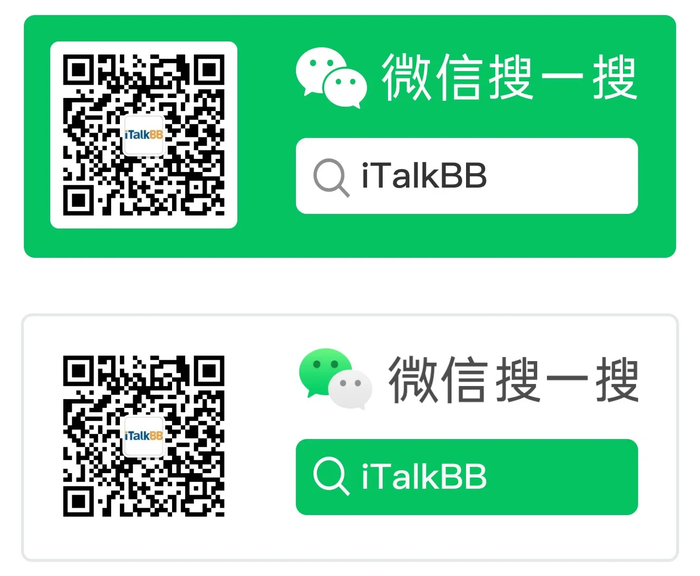 扫描二维码,或搜索“iTalkBB”,关注我们