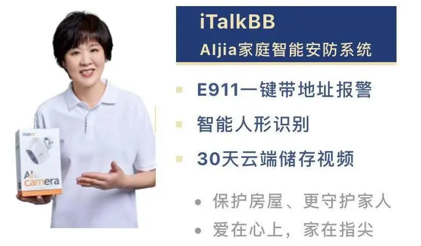 由中国女排国家队教练郎平代言的iTalkBB AIjia家居安防产品,品质有保障。 iTalkBB在美国有17年的品牌历史,全美遍布实体体验门店,中英粤三语服务,为华人量身定做安防服务!