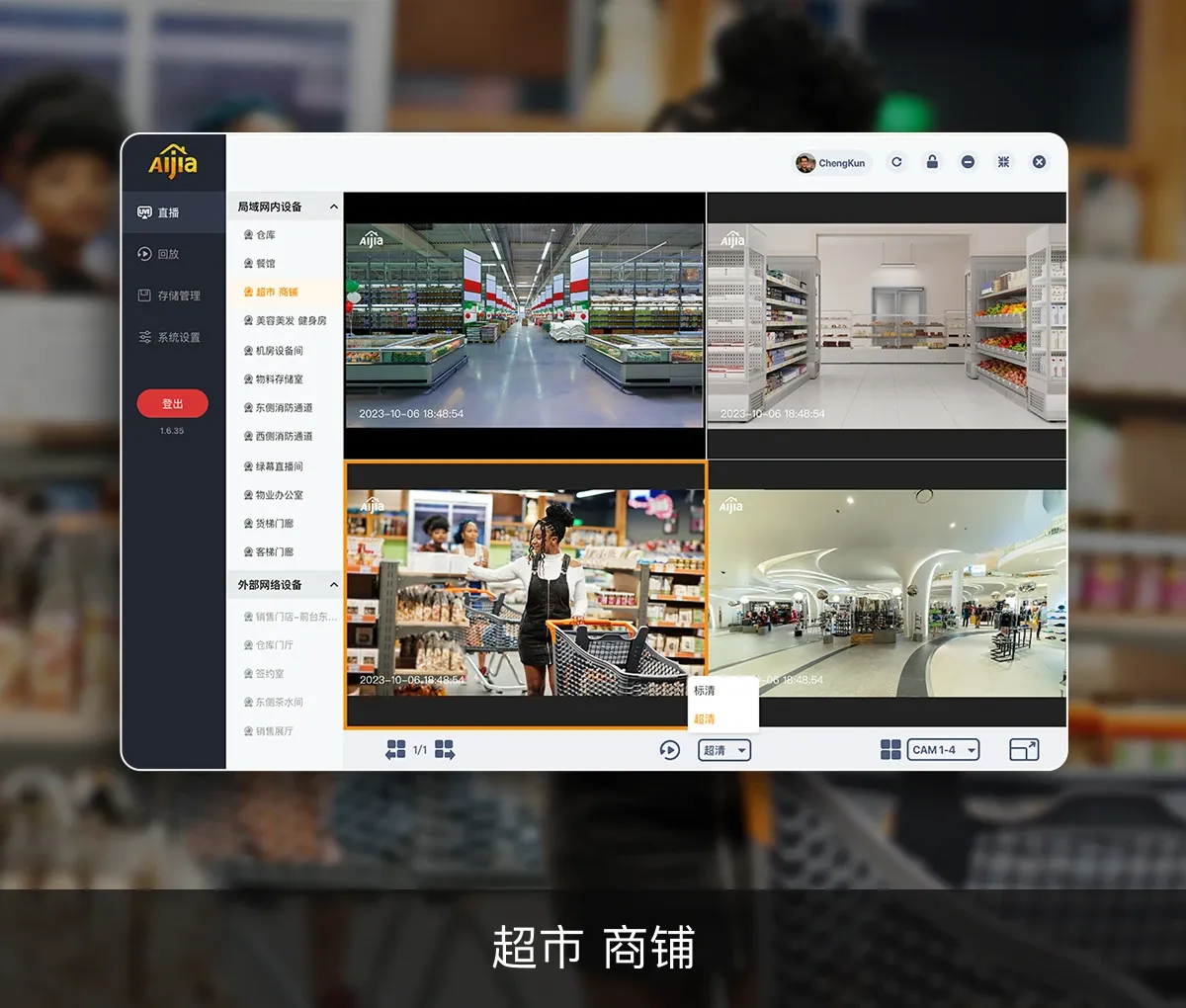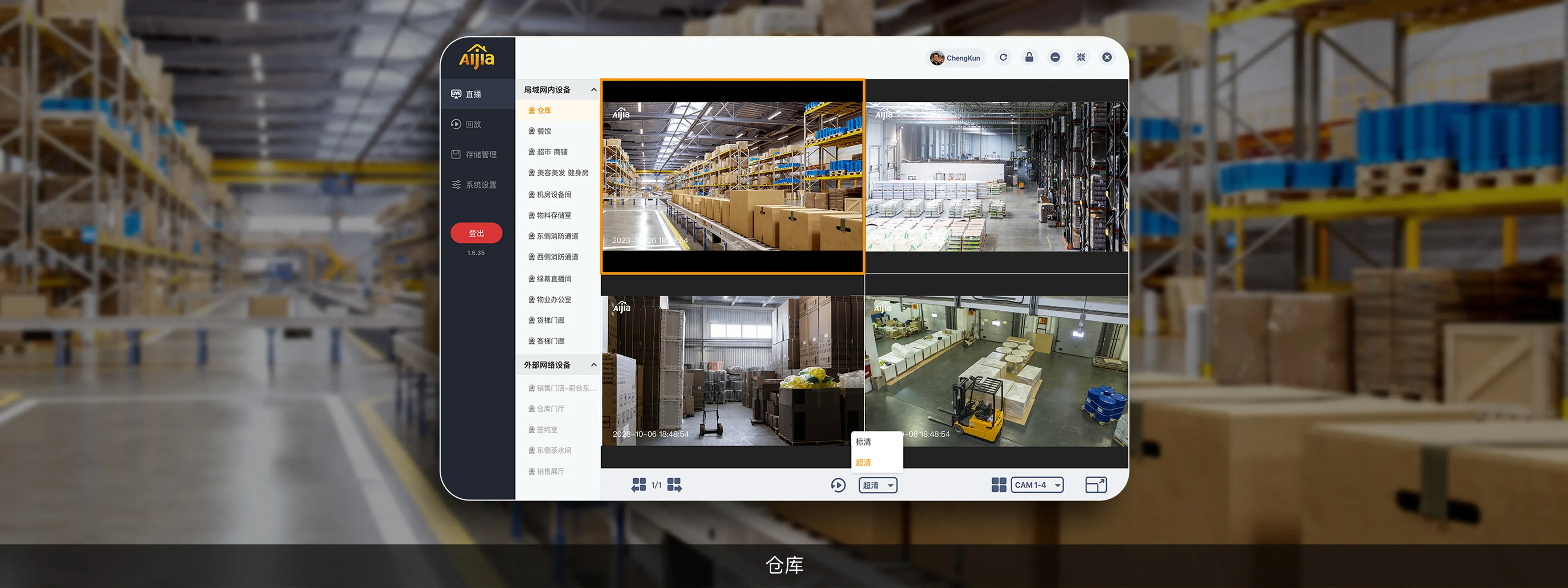 实时直播分屏分屏模式同时显示多个AIjia摄像头的实时画面