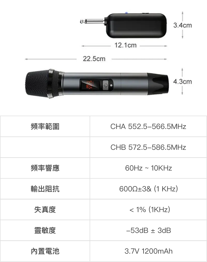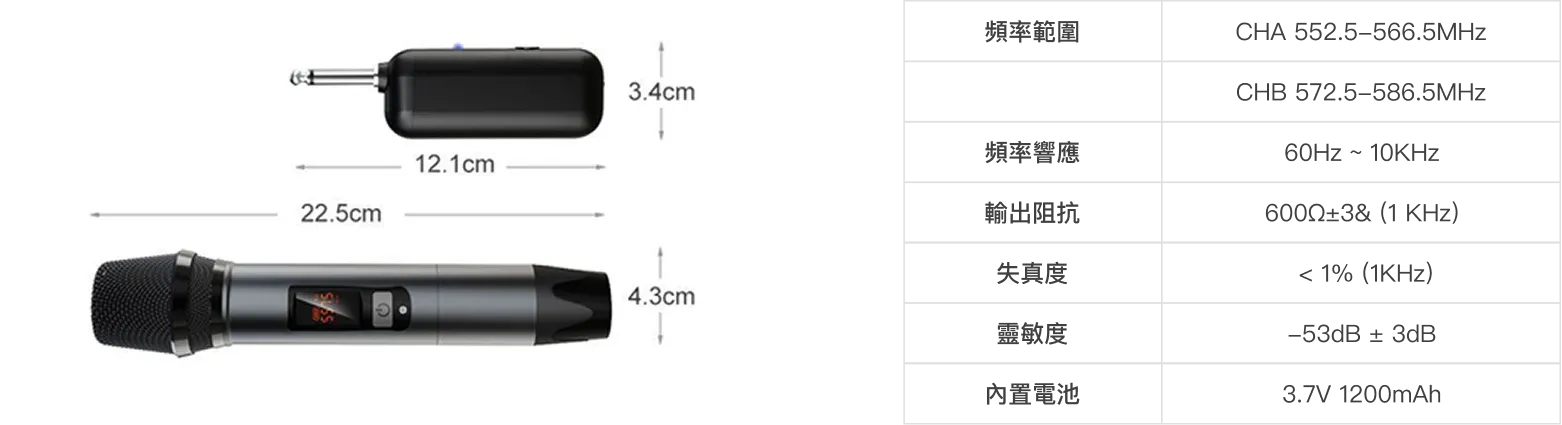 内建UHF 可调频率,有效避免频道干扰,确保传输稳定清晰。