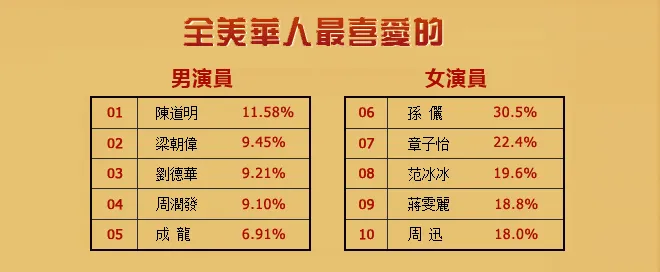 猜到了?中奖了?全美华人最喜爱的男女演员出炉