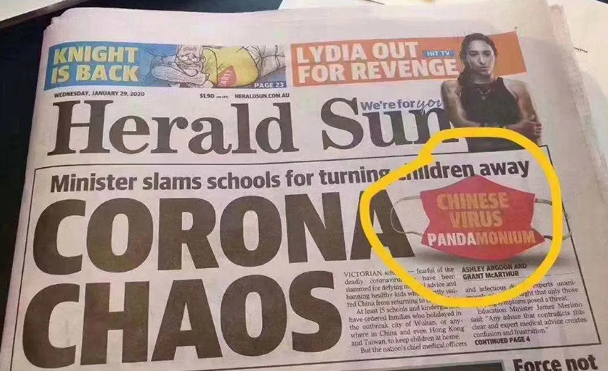 甚至海外报纸也公然在口罩上印出CHINESE VIRUS的字样。