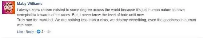 虽然这样可怖的账号已被注销,但疫情以来对亚裔的仇恨情绪的确是有所增长的。网友评论“一直都知道种族主义存在于世界各地,人们其他种族有排外情绪是人类本性。但从来不知道仇恨的程度竟至于此,直到今天。真的为人类感到悲哀。我们并不比病毒本身好多少,我们用仇恨摧毁了一切,甚至包括人性中的善良。”