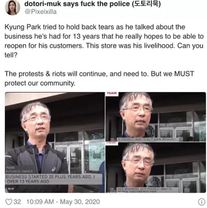 可是相信大多数苦心经营的店主还是不愿见到自己的心血就这样被付之一炬。这位亚裔店主接受采访时候只能强忍眼泪,13年的店面被毁,无疑令人心碎。