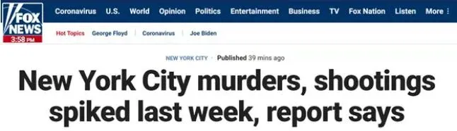 就拿纽约市来讲,谋杀和枪击案件就在上周激增,远远高于去年同期水平。