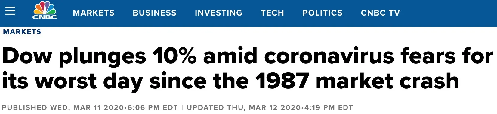 疫情之中,美股还迎来了多年未见的暴跌。今年3月9日,时隔23年,再次触发熔断机制,还出现了1987年以来最差单日跌幅。