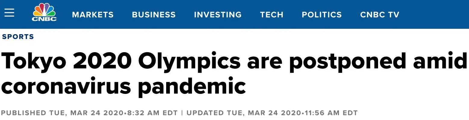 3月24日,东京奥运终于不再讳言,确定延期至2021年7月23日。