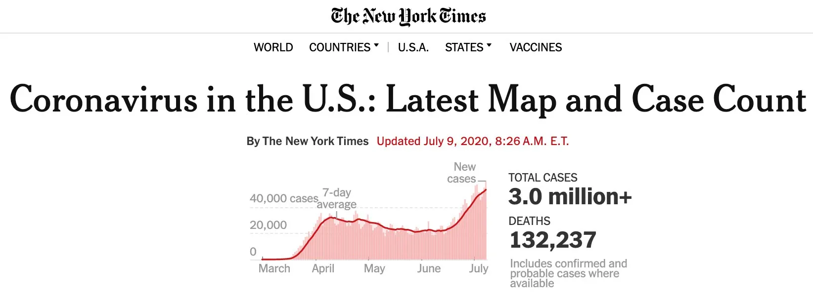 美国新冠确诊人数已经突破300万,而疫情曲线仍站稳高位前途未卜。