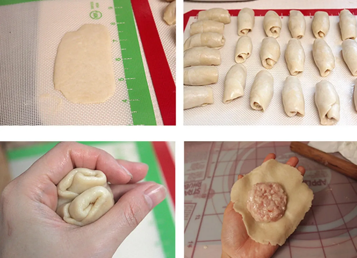 6.最终压成圆饼,包入肉丸馅,朝下收口