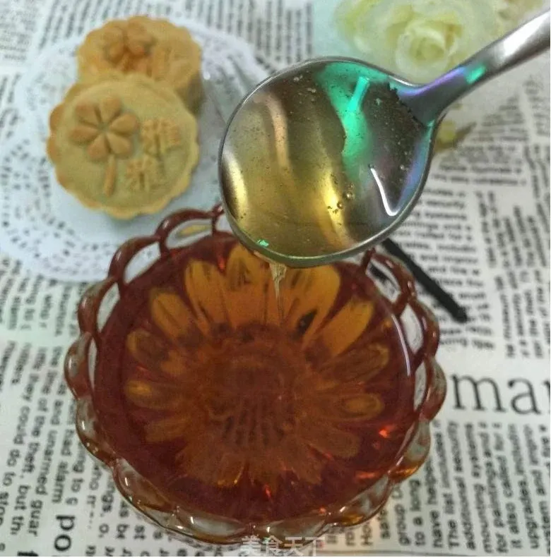 转化糖浆需要提前熬制,熬好后保存时间越长,味道越香,而且它不怕坏,可以保存很久。一般自制月饼用的转化糖浆可以提前几周,甚至提前一年做好,转化糖浆做得好,月饼做成后回油快,色泽也会更加诱人。