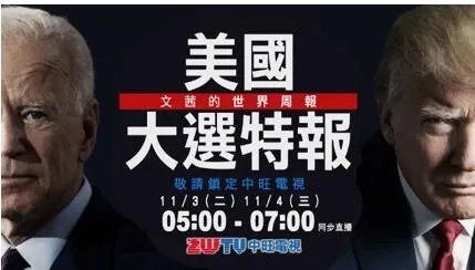 不仅在美西时间11月3日、11月4日的5am-7am(8am-10am),有横跨台湾政治、商业与媒体界的风云人物陈文茜主持大选特别节目《美國百年歷史 最重要的總統大選》,协同三位重量级来宾江宜桦,朱云鹏,杨永明共同为您分析大选的最后冲刺。