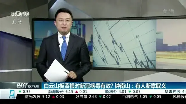 美钟南山在接受媒体采访时表示:”我在几天前粤港澳大湾区三地合作协议(论坛)中曾讲过一句话,复方板蓝根,而非板蓝根在实验室有抗新冠病毒作用,这离体内有效还很远,白云山药厂作为‘内行人’应很了解,但(其中)有人断章取义,将我这句话扩大,甚至说是板蓝根,这是一种歪曲,有关部门已出来澄清。”