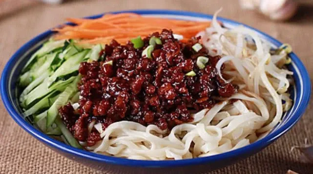 北京炸酱面是当地家喻户晓的一道名吃,又称“小碗干炸”。老北京炸酱面的作法主要是由炸酱,面及菜码等佐料与面条拌匀而食,食感清爽可口浓郁不腻。北京炸酱面最讲究菜码,在食用时除了将煮熟的手擀面拌上炸酱外,也会佐以小黄瓜丝、葱白、豆芽等等码料,同时依靠个人喜好添加醋,麻油等调味,有些人还喜欢和整瓣的蒜头一起搭配食用。