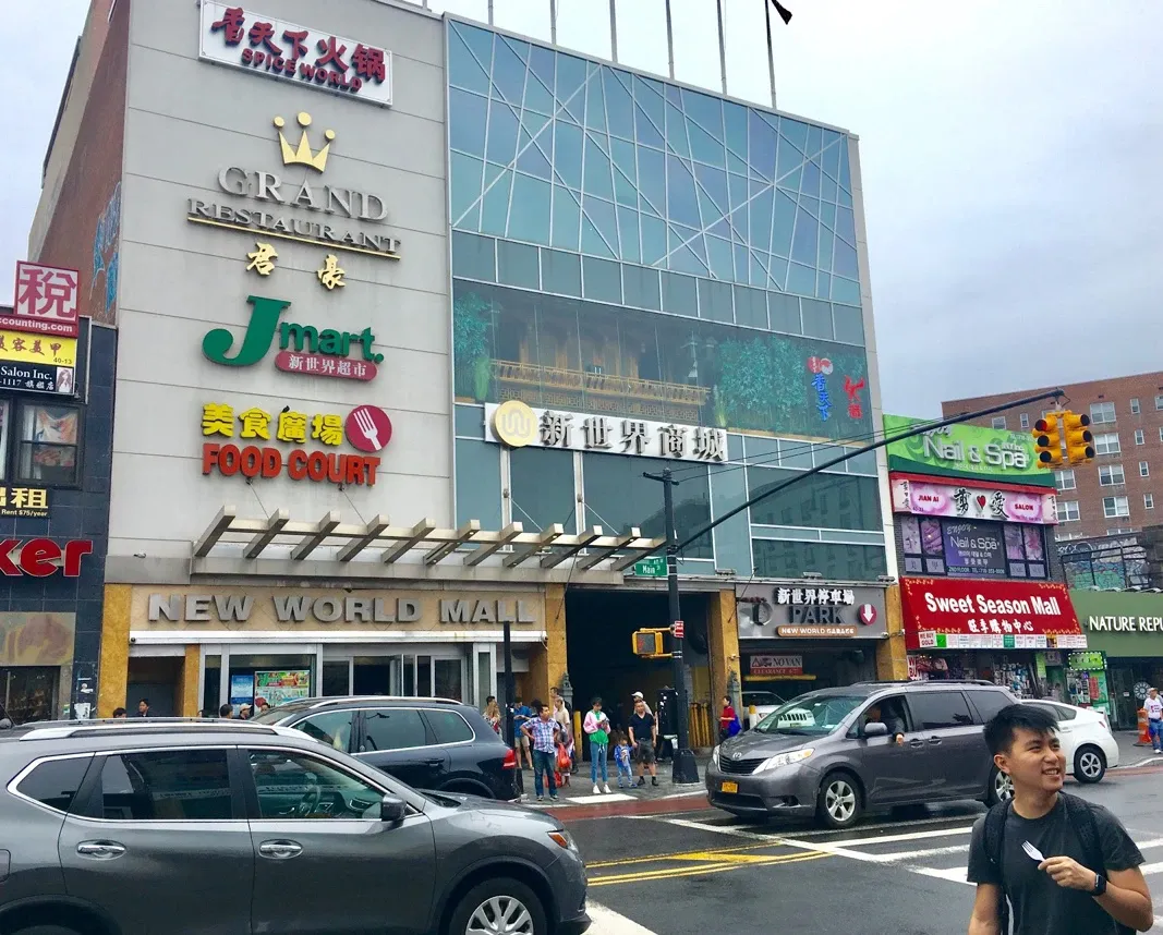 被盗的“六福珠宝”店,隔壁就是法拉盛最大、最繁华的新世界商城,每日的人流量极大,不仅商城里面,周边也有很多华人经营的店铺。
