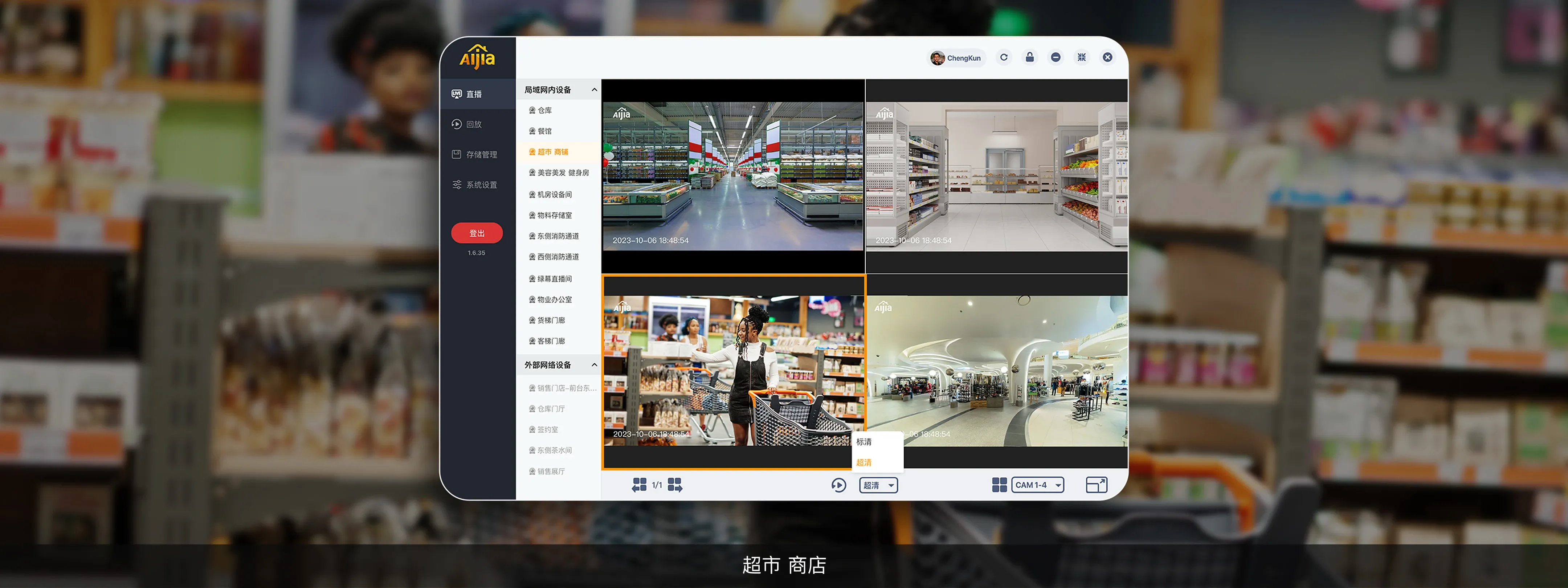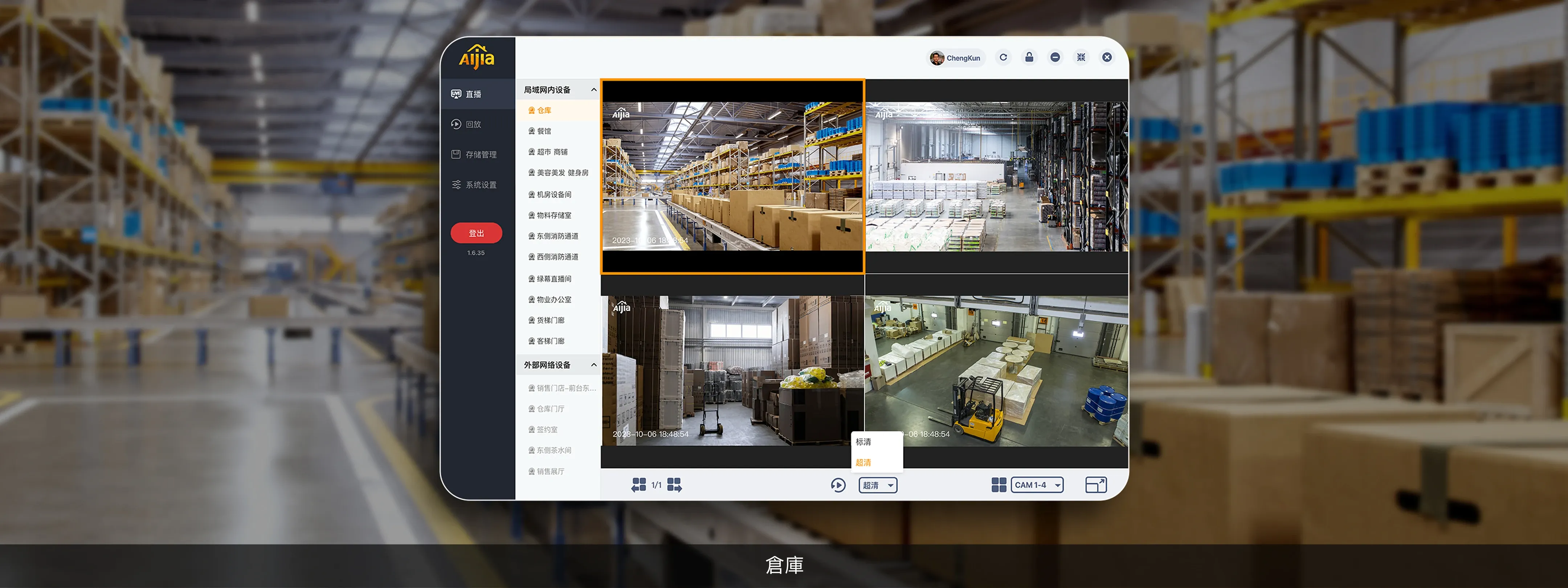 即時直播分屏分屏模式可同時顯示多個 AIjia 攝像頭的即時畫面