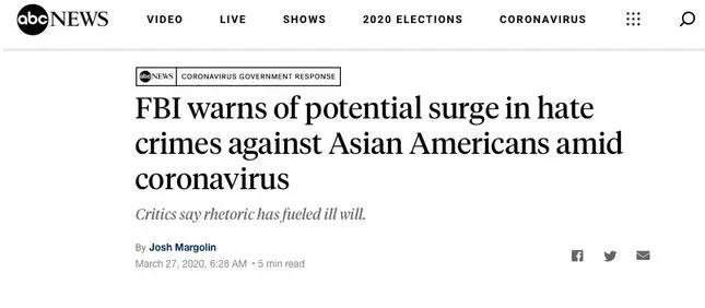 據聯邦調查局休斯頓辦事處收集並分發給當地情報機構的報告稱:由於冠狀病毒的傳播,部分美國人會將COVID-19與中國或者亞裔美國人聯系起來。針對亞裔美國人的仇恨犯罪事件可能威脅到亞裔各社區。