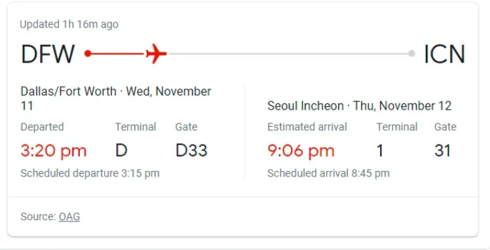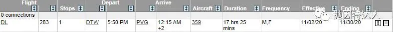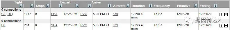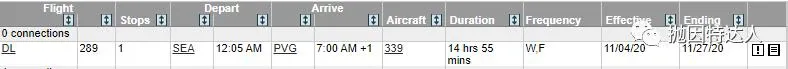 DL289(西雅圖 – 上海浦東,技術經停首爾)11月班期細節:0:05 – 07:00 +1,每周三、五執飛