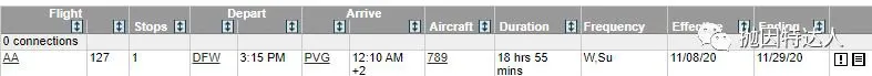 AA127(達拉斯 – 上海浦東,技術經停首爾):15:15 – 0:10 +2,每周三、日執飛