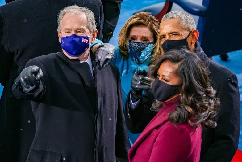 送走前總統特朗普壹家後,早上8點49分,新任總統拜登及第壹夫人離開美國國賓館布萊爾宮,按照傳統前往聖馬修大教堂進行晨禱彌撒。10點左右,多位前白宮主人,包括比爾·克林頓夫婦,小布什夫婦和奧巴馬夫婦也重回白宮,準備參加新總統就職典禮。