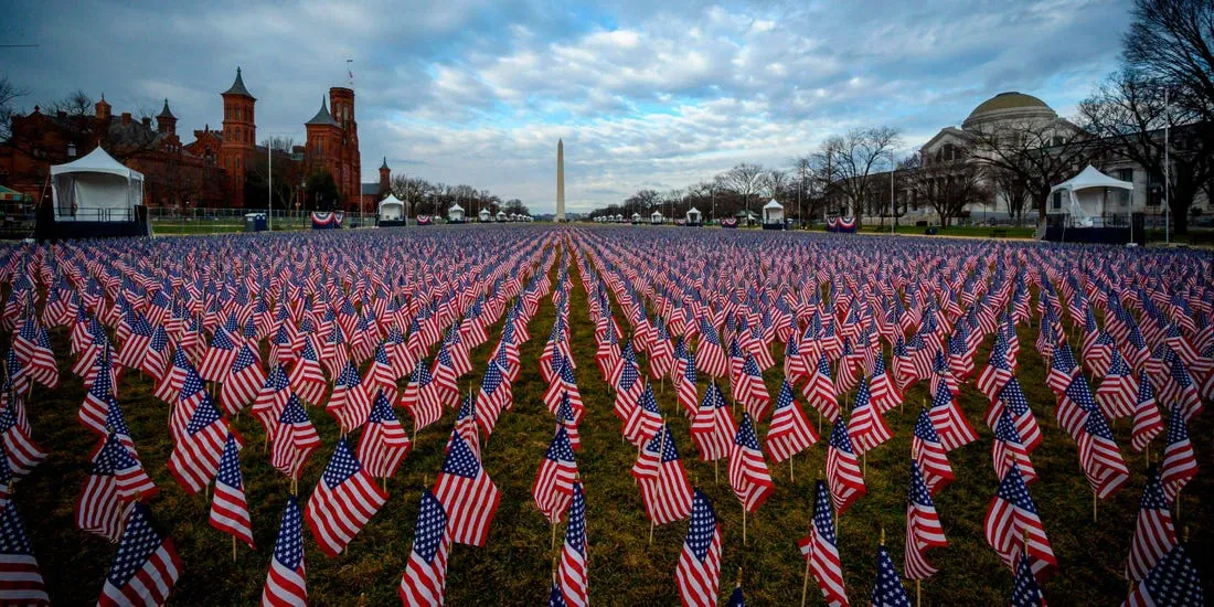 由於疫情原因,拜登的就任儀式並沒有像以往壹樣邀請大量賓客,原本計劃20萬人現場見證的就職典禮,今天現場出席人數僅有1000人左右,這也是1945年羅斯福總統就職典禮以來,人數最少的壹次。但是,白宮門前的國家廣場草坪上,早早插下20000面美國國旗,象征著現場見證的美國人民。