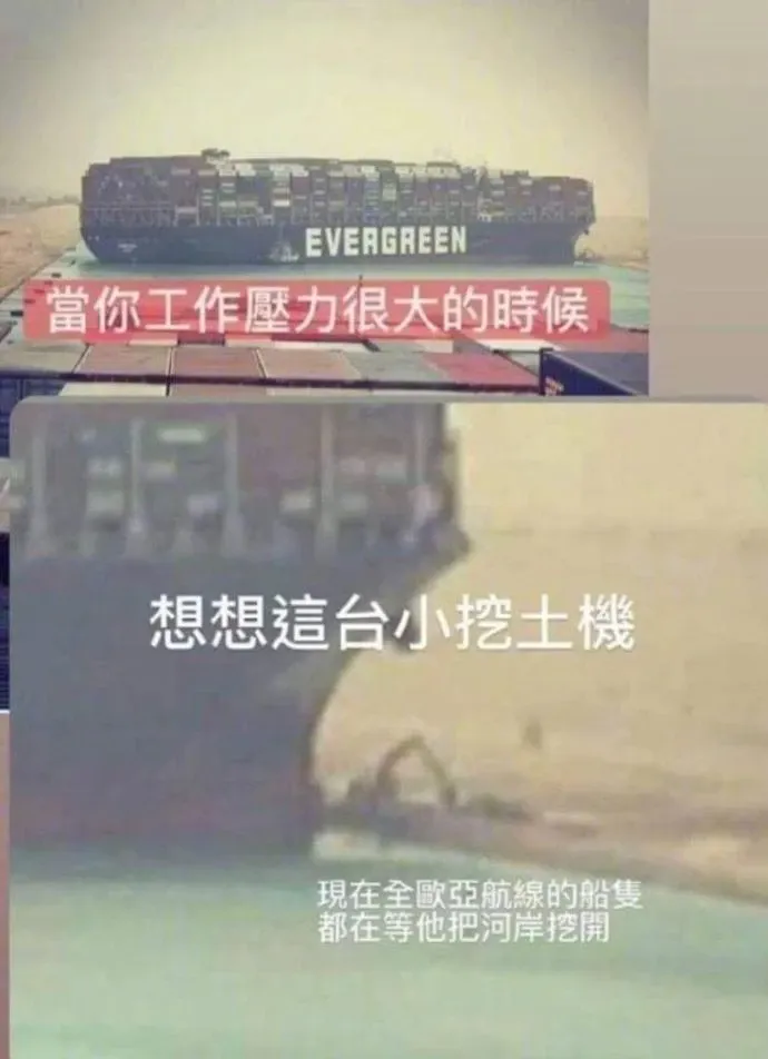 堵車大家都熟悉,堵船可不是天天見,這次一堵還堵在全世界最重要的航道之一,網友們也紛紛發動想象力,一時間“堵船”梗滿天飛