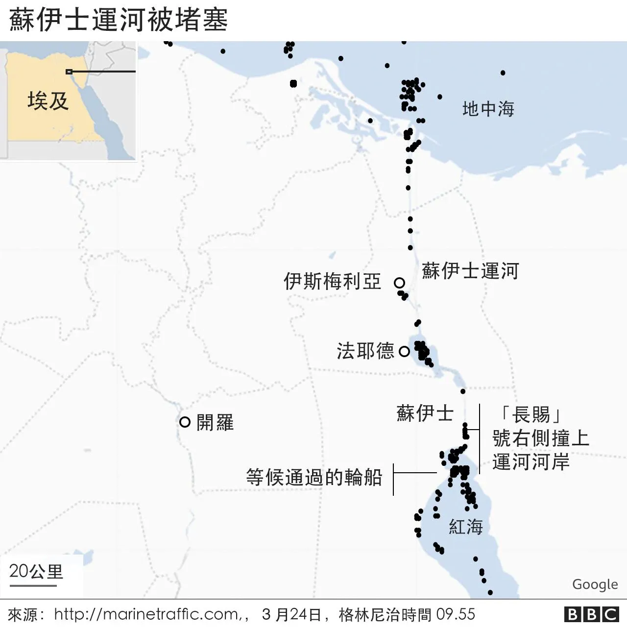 蘇伊士運河是世界上最重要的運河之一,直接連接亞歐大陸,讓亞歐之間來往船只不必遠航繞過非洲南端的好望角,大大節省航程。根據運營運河的蘇伊士運河管理局數據,每年有19000艘船通過這條連接紅海和地中海的水路。這相當於每天大約50艘船,每年運載10億噸貨物。若蘇伊士運河長時間堵塞,會導致整個全球貿易乃至下遊供應鏈受到影響。