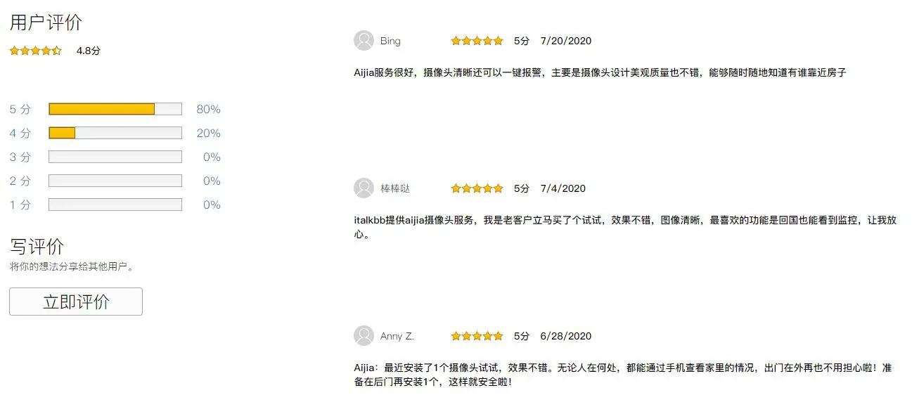 自2019年iTalkBB推出AIjia全新安防服务后,iTalkBB收到了客户的好评和肯定,同时不断优化产品质量和服务水平,力求让每一位海外华人从iTalkBB得到最好的照顾和爱护。
